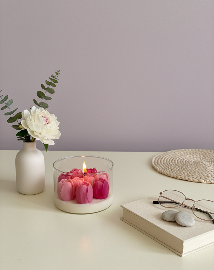 Sevdiklerinizle geçireceğiniz özel anlara romantik bir dokunuş katın. El yapımı Sevgililer Günü mumlarımız, sıcak floral kokusuyla evinize romantik bir atmosfer getirir.